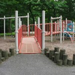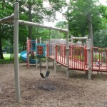 Richard Park is a small neighborhood park set in a quiet areaa few yards from the intersection of Richard and Parkview Avenues in West Caldwell. There are 2 small playgrounds set apart from each other with these wooden posts perfect for a cruising toddler. The ground cover is woodchips so it isn’t a great spot for crawlers. If you are close by it is a great spot to stop and play. There is a gradual ramp for handicap access.