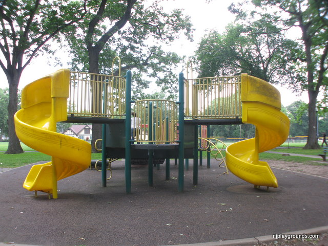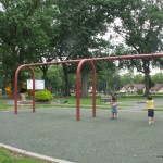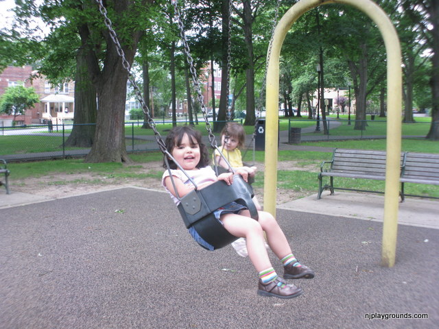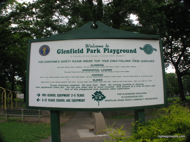 Glenfield Park playground is located and best accessible at the intersection of Woodland Ave. and Willowdale Ave. in Montclair NJ. This park is pretty close to the downtown area as well as the high school. Although it is a bit weathered, one of the swings was broken, and the equipment shows use, there are so many structures to keep the kids entertained. When we went there were even some young men using the playground equipment for exercise.
