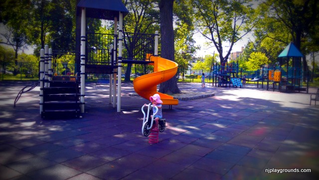 “The place was huge and beautiful! There are three separate sprinkler areas but only the largest one was working today. There is lots of seating and shade and an ice cream truck even come by! You have to park on the street but I got lucky and found a spot on 44th right by Kennedy Blvd (right across Kennedy from the entrance). Because the park is so big (and mostly fenced in, too!) even when there are a lot of kids it doesn’t feel crowded!”
