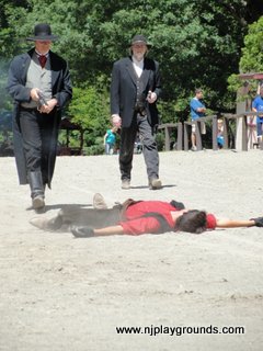 Every 15 minutes or so there is a show or demonstration that takes place in the middle of the street. Be forewarned, you have to be completely comfortable with gun play at this venue. The actors all carry “weapons†and the majority of the shows that take place feature shoot outs of sorts. Furthermore, the gift shop offers all sorts of cap guns and other pretend play items and many of the kids will be adorning recent purchases and play acting along with the staff.