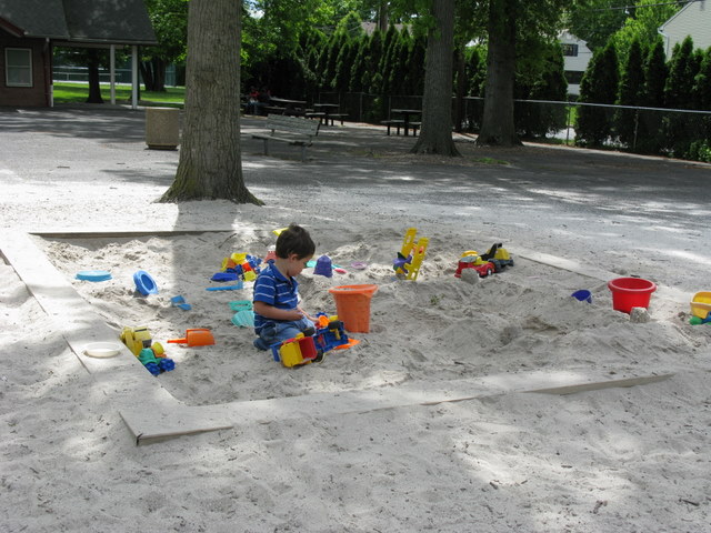 This park is a favorite for us since it has a sandbox, with plenty of toys to share.  It also has restrooms, but they (restrooms) aren’t open on the weekends. Â