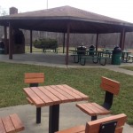Benches: 1 Bench at older children play area. Gazebo with several benches next to toddler play area