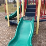 Slides: 5 slides at older playground (1 double, 1 steep, 1 small, & 1 twisty) 3 slides at toddler (1 double and 1 small)