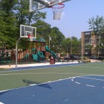 - View of basketball court in middle of park