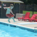 It was a fun day for all of us, (2 moms of mysterious ages, 1 Tia, 8yo girl, 8yo boy, almost 7yo boy, 6yo boy, 4yo girl, 2.5yo girl). The pool was clean and refreshing (also heated) and overlooks the private lake. The life guard was attentive and friendly. They also had a chest of life vests of varying sizes if you need one for yourself or your child. We snagged a table with an umbrella and chairs, but had camp chairs in the car just in case. I would suggest bringing noodles, some people brought their own. After watching his friends jump off the diving board, my son got the nerve to do so, and he wouldn’t stop!